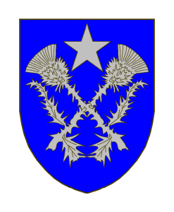 D’azur à deux chardons d’argent en sautoir, tigés et feuillés du même accompagnés en chef d’une étoile d’argent.