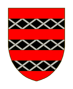 De gueules à trois fasces de sable, les deux premières chargées de 4 sautoirs, la dernière de trois sautoirs d’argent (en somme, fasces frettées).