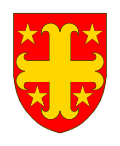 De gueules à la croix ancrée d’or, accompagnée de quatre étoiles (à cinq ou six rais) du même.