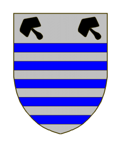 D’argent à cinq burelles d’azur, accompagnées en chef de deux maillets couchés de sable, la manche à sénestre.