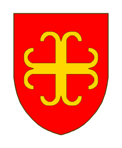 De gueules à la croix ancrée d’or (parfois recercelée).