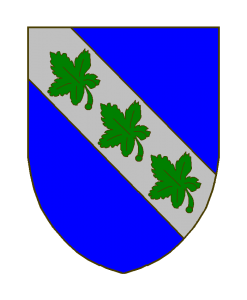 D’azur à la bande d’argent chargé de trois feuilles de vigne de sinople.