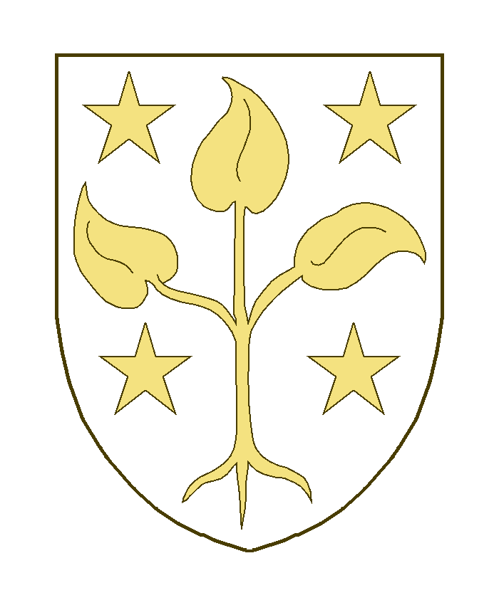 Un plant de trois feuilles arraché, accompagné de quatre étoiles, deux en chef, deux en pointe.