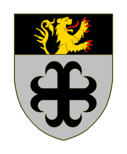 D’argent à la croix ancrée de sable, au chef du même, au lion issant contourné d’or armé et lampassé de gueules.
