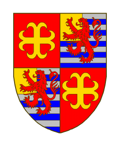 Écartelé: aux I et IV de gueules à la croix ancrée d’or, aux II et III burelé d’argent et d’azur, au franc-quartier d’or, au lion de gueules brochant sur le tout (qui est Houffalize).