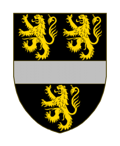 De sable à la fasce d’argent, accompagné de trois lions d’or.