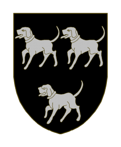 De sable à trois chiens braques passant d’argent, posés 2 et 1.