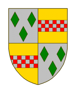 Écartelé: aux I et IV d’argent à trois losanges de sinople, aux II et III d’or à la fasce échiquetée d’argent et de gueules de trois tires.