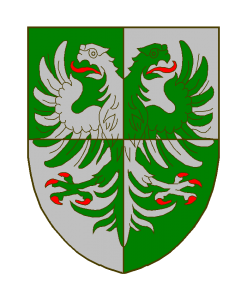 Écartelé d’argent et de sinople, à l’aigle à deux têtes de l’un en l’autre, armée et lampassée de gueules.