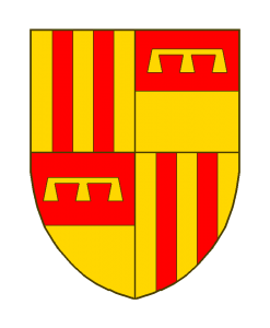 Écartelé: aux I et IV d’or à deux pals de gueules, aux II et III coupé de gueules et d’or, au lambel du même en chef.