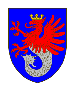 D’azur au griffon mariné coupé de gueules sur argent, couronné d’or.