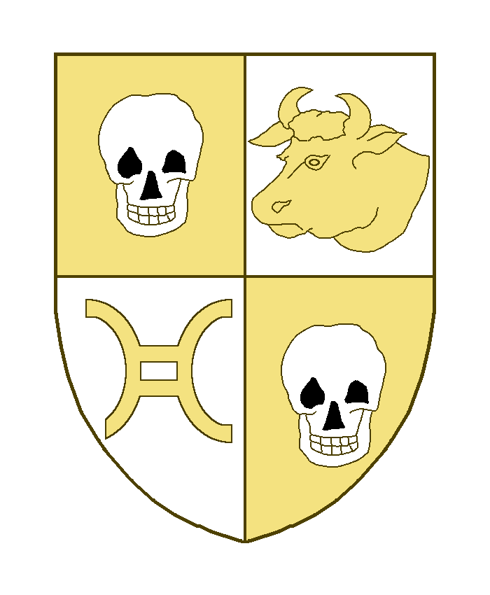 Écartelé, aux I et IV un crâne, au II une tête et col de boeuf , au III une anille,