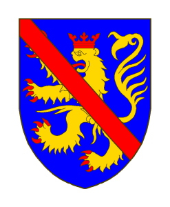 D’azur au lion d’or, armé,lampassé et couronné de gueules, à la bande du même brochant sur le tout.
