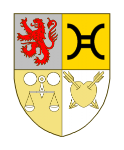 Écartelé: au I (d’argent) au lion (de gueules), au II (d’or) à l’anille (de sable), au III une balance accompagnée en chef de deux besants ou tourteaux, au IV un coeur percé de deux flèches, les pointes en bas.