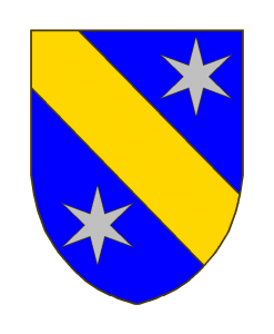 Rapedius de Berg – variante 2 Sizes: 150 × 150 / 247 × 300 / 700 × 850 Rapedius de Berg - variante 2 Armes: D’azur à la bande d’or accostée de deux étoiles à six rais d’argent. Cimier: Une étoile d’argent entre un vol du même. (S.L./N./M.W.). Zitiert nach (Quelle): A.L. Seite 662
