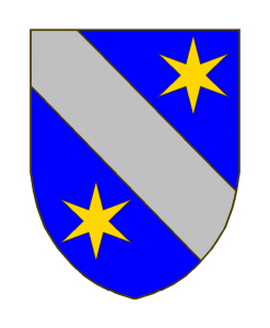 Rapedius de Berg – variante 3 Sizes: 150 × 150 / 247 × 300 / 700 × 850 Rapedius de Berg - variante 3 Armes: D’azur à la bande d’argent accostée de deux étoiles à six rais d’or. Sources du Dr. Loutsch: (R.). Zitiert nach (Quelle): A.L. Seite 662