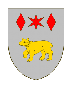 D’argent à un ours passant d’or, surmonté d’une étoile à six rais de gueules, accostée de deux losanges du même.