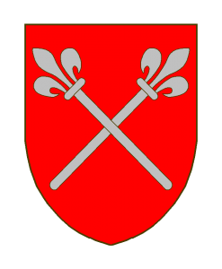 De gueules à deux bâtons (ou sceptres) fleurdelisés d’argent, passés en sautoir.