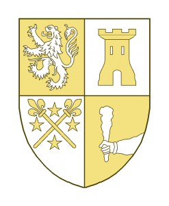 Écartelé: au I un lion, au II une tour, au III deux sceptres fleurdelisés en sautoir cantonnés de quatre étoiles, au IV un bras vêtu issant du flanc sénestre tenant une massue en pal.