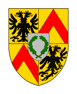 Écartelé: aux I et IV d’or à l’aigle double couronnée, de sable aux ailes éployées, le bec ouvert, langué de gueules, aux II et III d’or au chevron de gueules; sur le tout d’argent une branche d’olivier de sinople liée en forme de couronne.