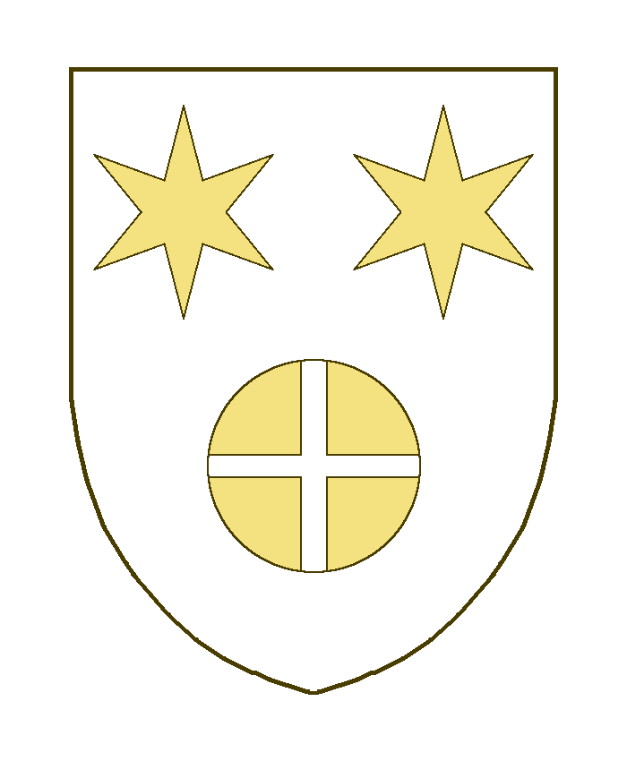 Un besant ou tourteau chargé d’un filet en croix, accompagné en chef de deux étoiles à six rais.