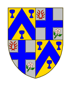 D’azur au croissant montant d’or, surmonté de six besants du même, rangés 3 – 3 en fasce.