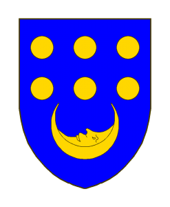 D’azur au croissant montant figuré d’or, surmonté de six besants du même, rangés 3 – 3 en fasce.