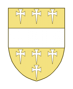 Une fasce accompagnée de sept croisettes pattées, au pied fiché , trois en chef, quatre en pointe, rangées 3 – 1.