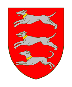 De gueules à trois lévriers d’argent colletés d’or, l’un sur l’autre.