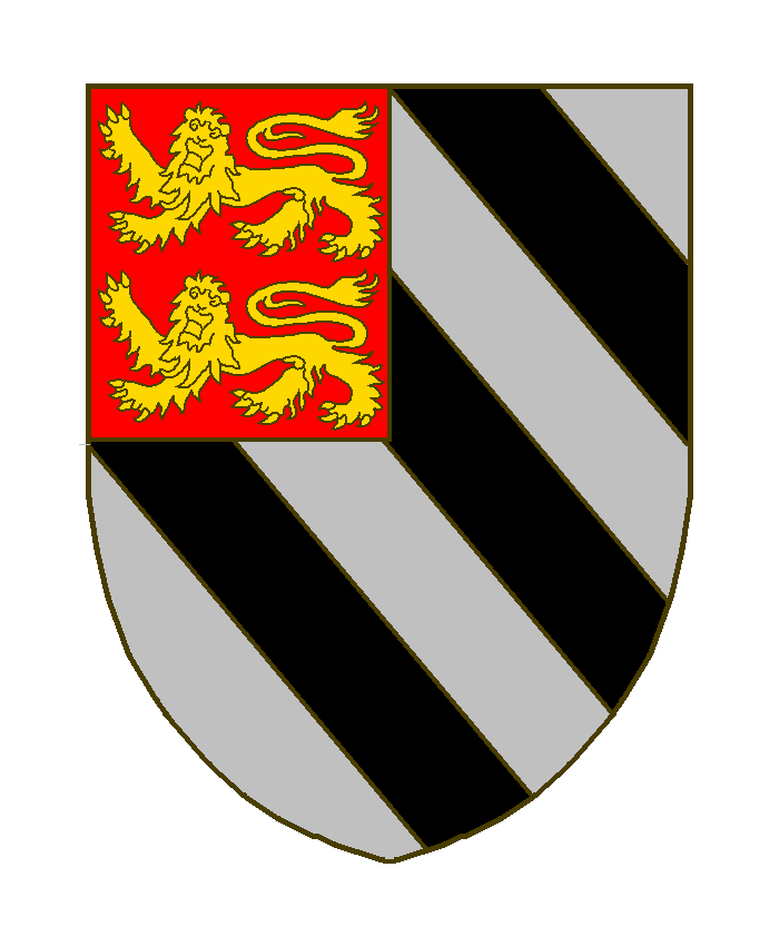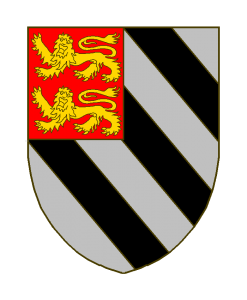 Ruffignon – variante 1a Sizes: 150 × 150 / 247 × 300 / 700 × 850 Ruffignon - variante 1a Armes: D’argent à trois bandes de sable à dextre, au franc-quartier sénestre de gueules à deux léopards d’or. Cimier: Un lion d’or issant. Sources du Dr. Loutsch: (B./Gourdet). Zitiert nach (Quelle): A.L. Seite 692