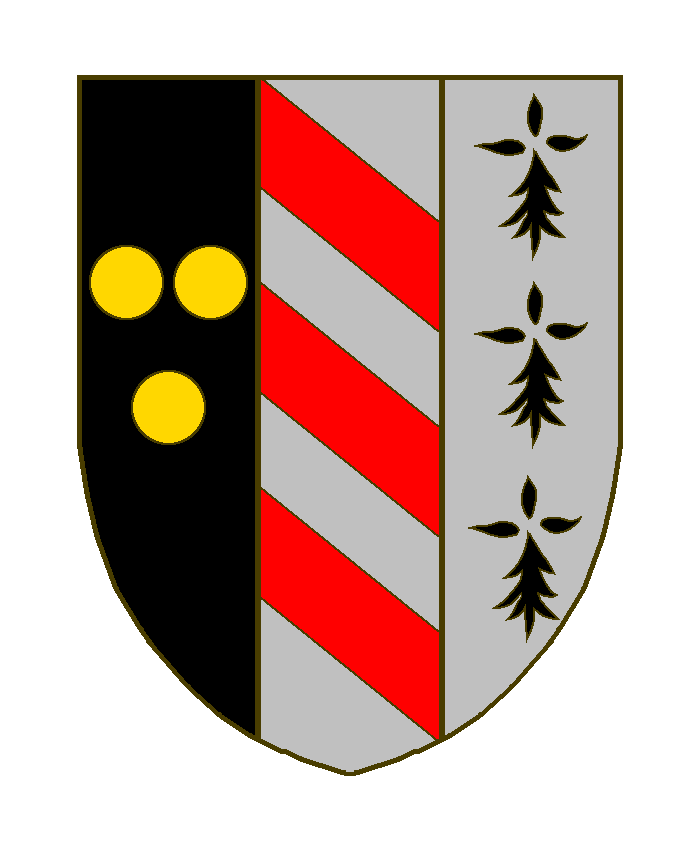 Saint-Baussant – variante 1 Sizes: 150 × 150 / 247 × 300 / 700 × 850 de Saint-Baussant - variante 1 Armes: Tiercé en pal, au I de sable à trois besants d’or, au II d’argent à trois bandes de gueules, au III d’argent à trois mouchetures d’hermines en pal. Sources du Dr. Loutsch: (H.A.). Zitiert nach (Quelle): A.L. Seite 695
