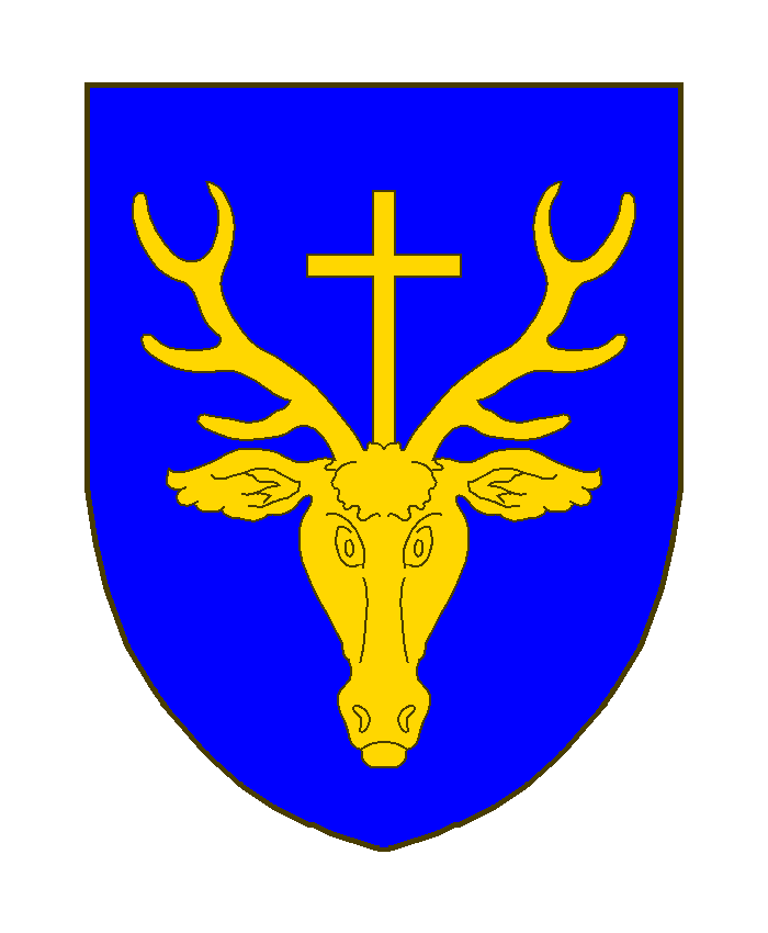 D’azur au rencontre de cerf d’or, entre les bois duquel une croix du même.