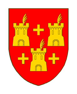 De gueules à trois tours d’or, accompagnées de trois croisettes mal ordonnées du même, une palme d’or issant de chaque tour.