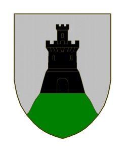 D’argent à une tour sommée d’une tourelle de sable, posée sur une terrasse de sinople.