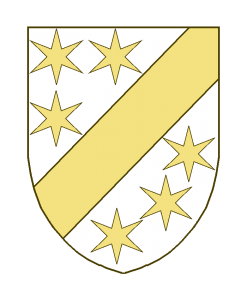 Une barre, accostée de six étoiles à six rais, trois en chef, trois en pointe.