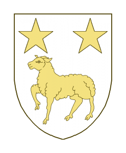 Un mouton passant, accompagné en chef de deux étoiles.