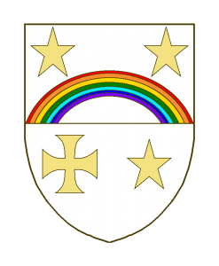 Coupé, au I un arc en ciel mouvant du Coupé, accompagné en chef de deux étoiles, au II une croisette pattée et une étoile, accostées.