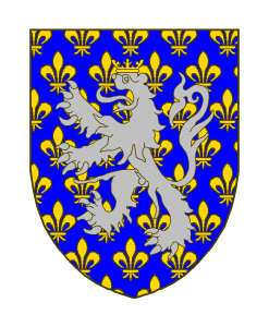 D’azur au lion d’argent couronné d’or, le champ semé de fleurs de lis du même. Capeline d’azur, semée de fleurs de tilleul, renversées, sans tiges, d’or.