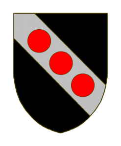De sable à la bande d’argent chargé de trois tourteaux de gueules.