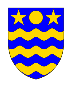 D’azur à trois fasces ondées d’or, accompagnées en chef d’un besant accosté de deux étoiles, le tout du même.