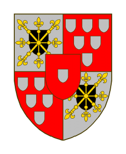 Écartelé: aux I et IV d’argent à l’écusson de sable, à l’escarboucle pommetée et fleurdelisée d’or brochant, aux II et III de gueules à six écussons d’argent posés 3 – 2 – 1. Sur le tout de gueules à l’écusson d’argent.
