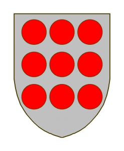D’argent à neuf tourteaux de gueules, rangés 3 – 3 – 3.