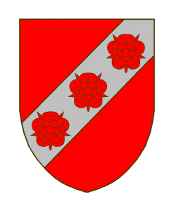 De gueules à une barre d’argent chargé de trois roses (de gueules?).