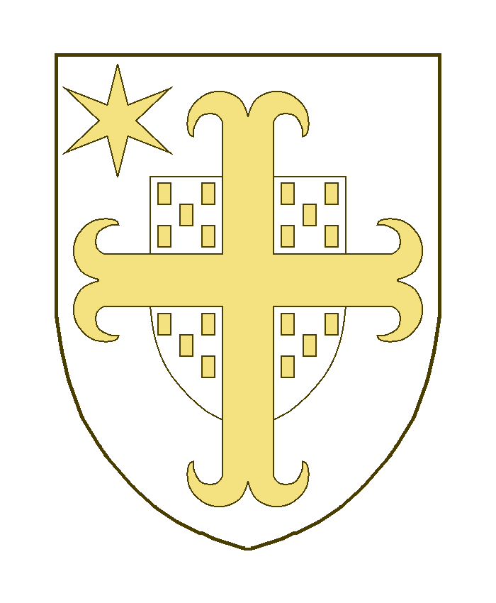 Un écusson en coeur accompagné en chef à dextre d’une étoile à six rais, une croix ancrée brochant, cantonnée sur le petit écusson de 18 billettes, dix en chef, huit en pointe.