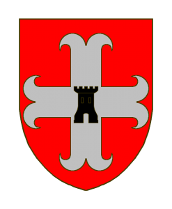 De gueules à la croix ancrée d’argent, la croix brisée en abîme d’une tour de sable.Sources du Dr. Loutsch: