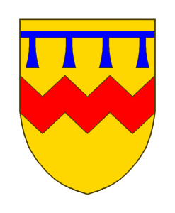 D’or à la fasce vivrée de gueules, au lambel à quatre pendants d’azur en chef.