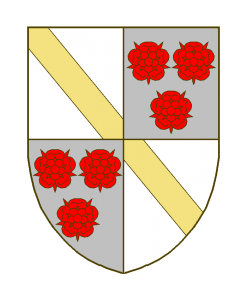 Écartelé: aux I et IV à la bande, aux II et III d’argent à trois roses de gueules.