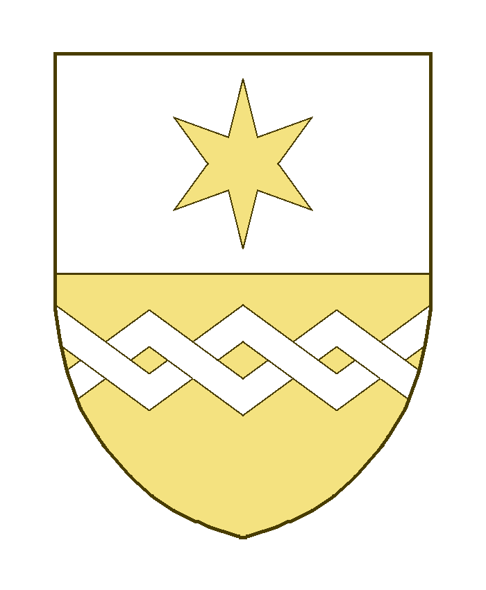 Coupé, en chef une étoile à six rais, en pointe deux trangles vivrées entrelacées en fasce.