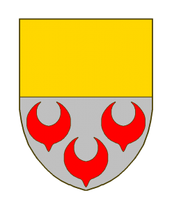 Coupé, en chef d’or, en pointe d’argent à trois feuilles de nénuphar de gueules.
