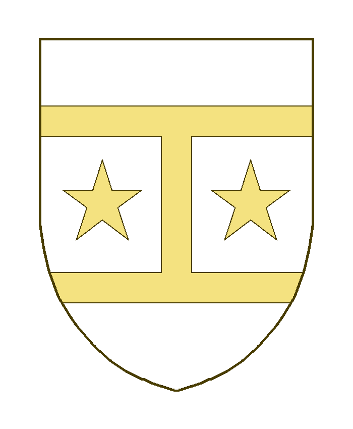 Deux filets en fasce, l’une en chef, l’autre en pointe, reliés par un filet en pal, accosté de deux étoiles.